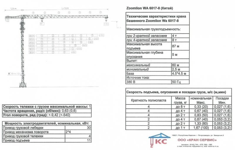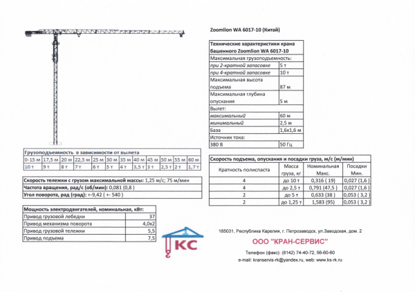 1. Аренда башенных кранов грузоподъемностью до 10 т.: