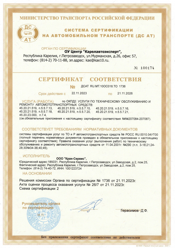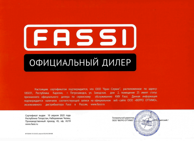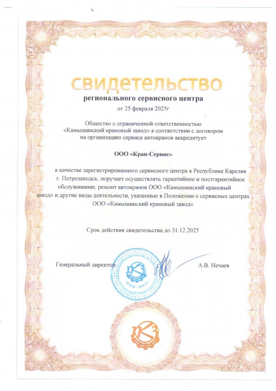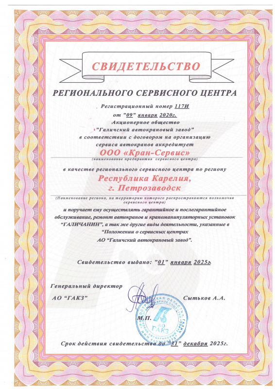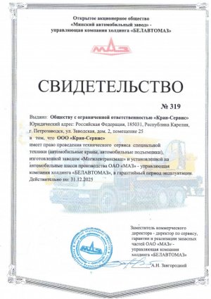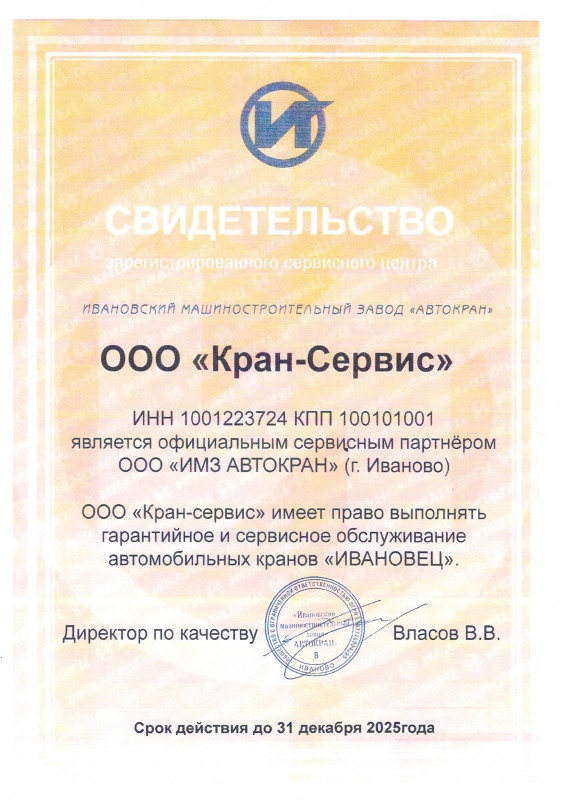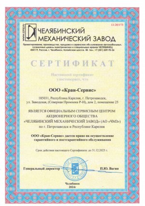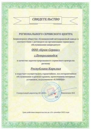 ООО «КРАН-СЕРВИС» является Гарантийным Сервисным Центром:
