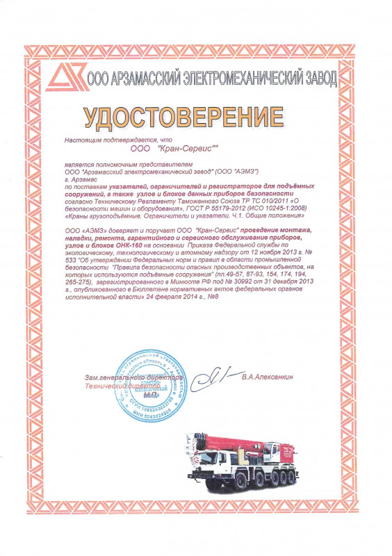 ООО «КРАН-СЕРВИС» предлагает следующие услуги: